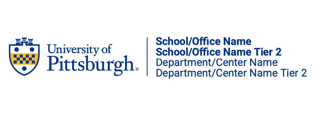The horizontal unit lockup is the primary unit lockup and should be used in most instances, combining the University’s primary logo with aligned department, school, or unit names. It is ideal for situations where the available space is wider than it is tall.